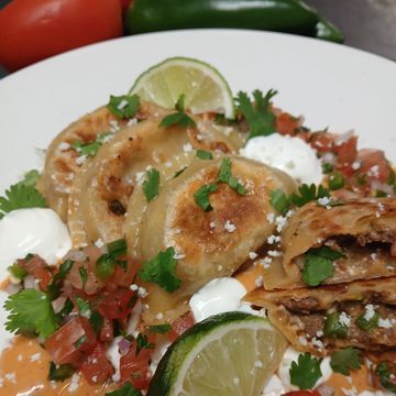 Seasoned ground beef, Tillamook sharp yellow cheddar and sautéed onions (suggested topping: sour cream/pico)